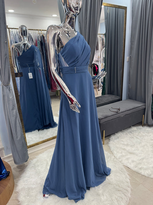 Vestido Azul Acero Asimétrico de Gasa con Transparencias Laterales – Talla S/M