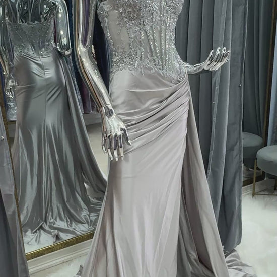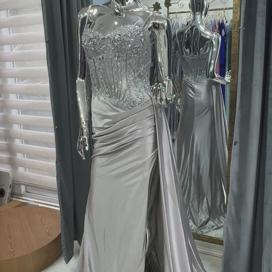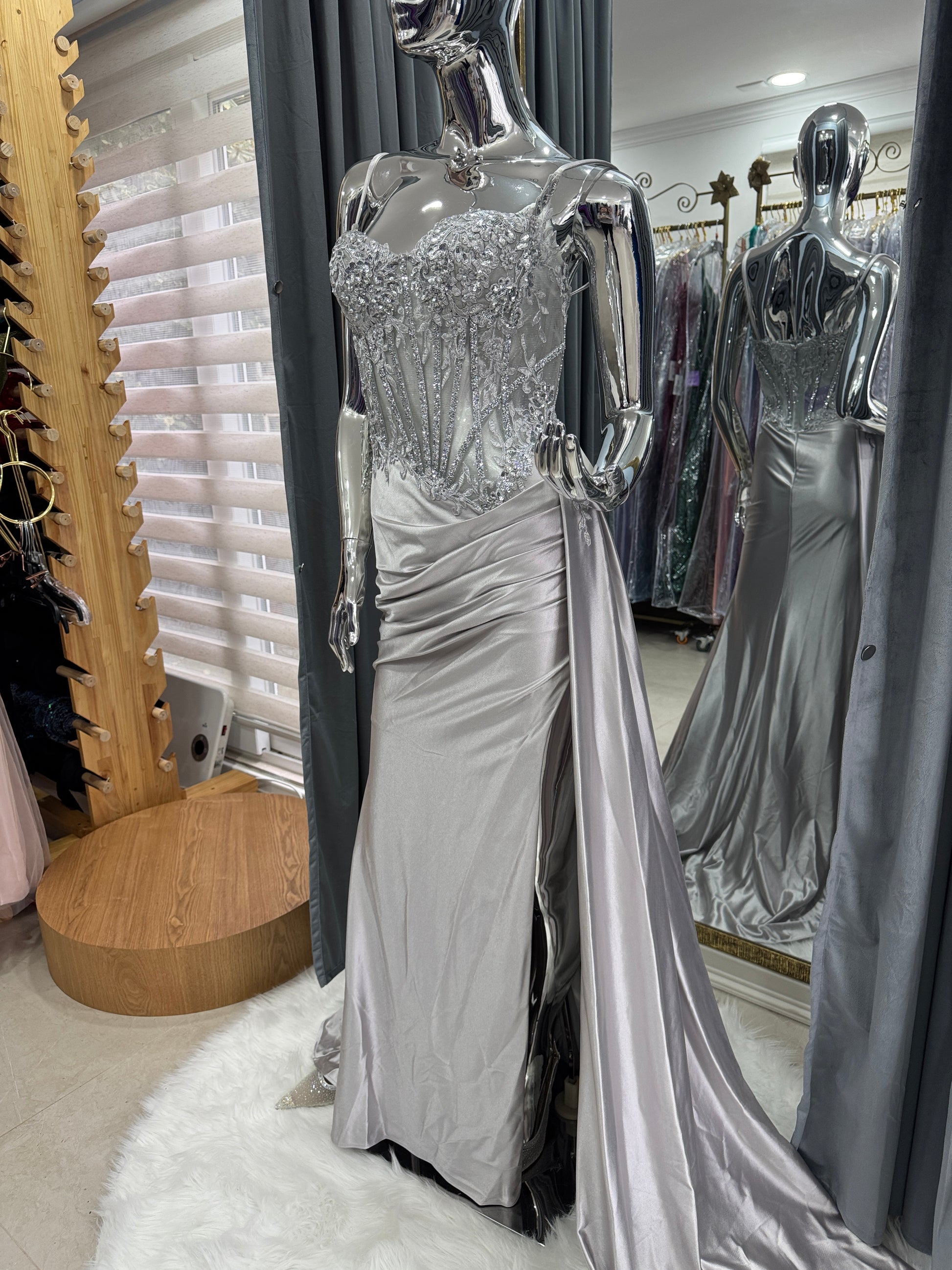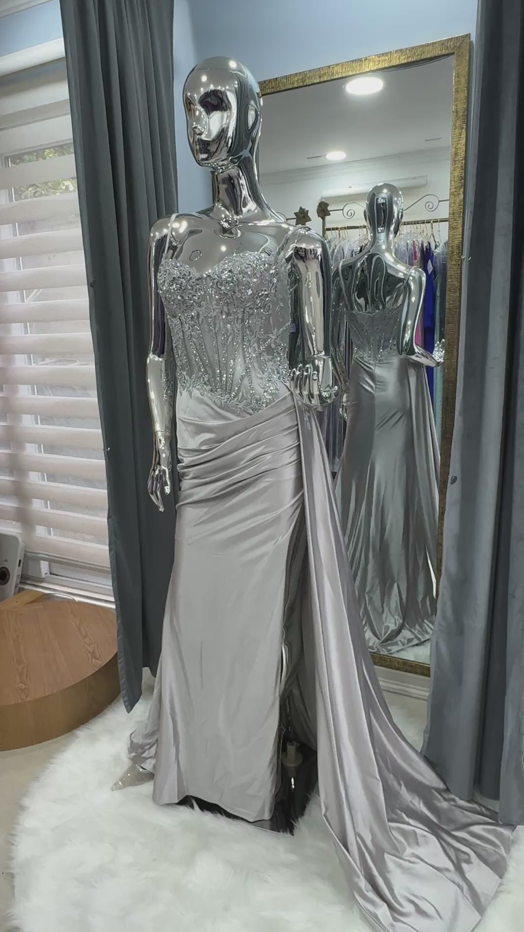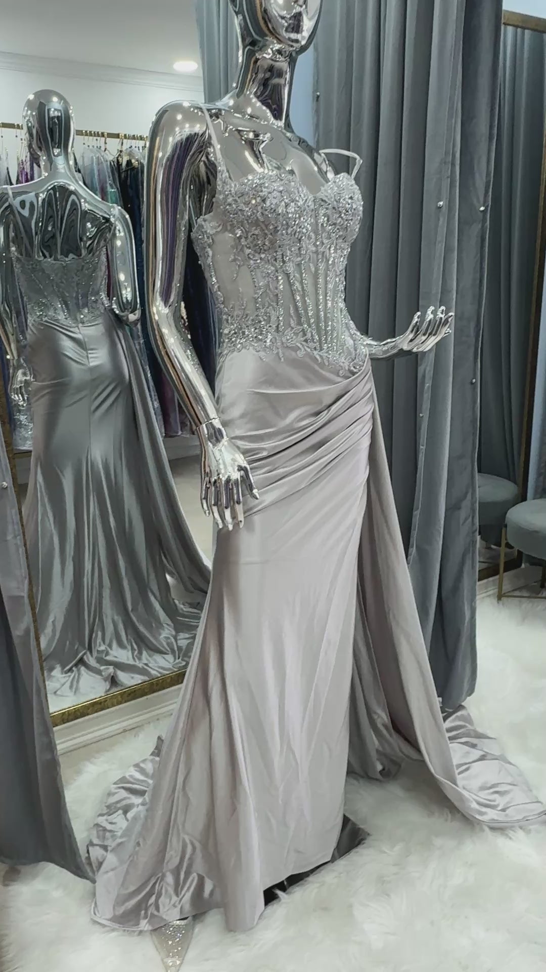 Un diseño que fusiona el arte del corset bordado con la delicadeza del satín perlado.
