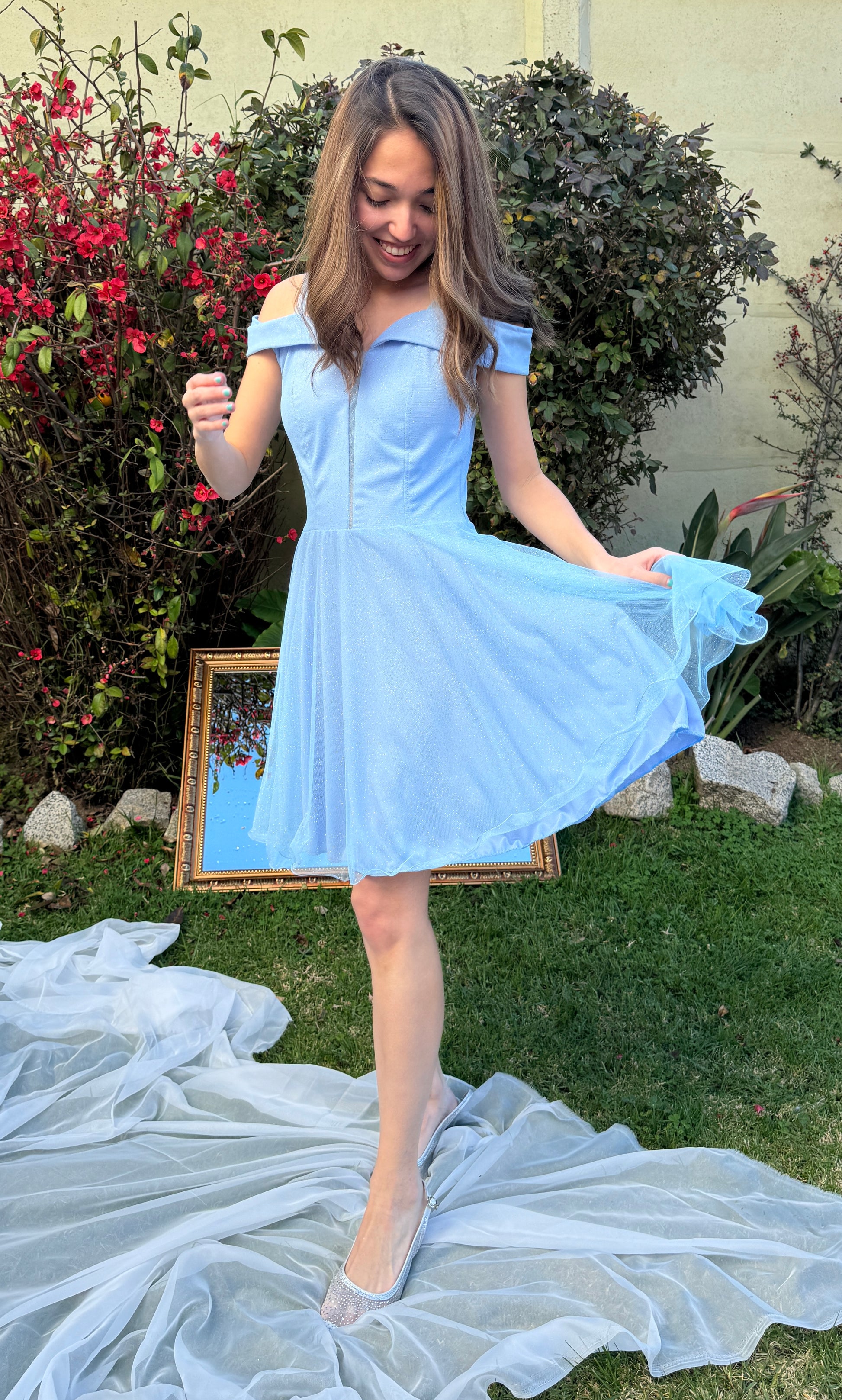 Vestido corto de fiesta Modelo Encanto, Celeste.